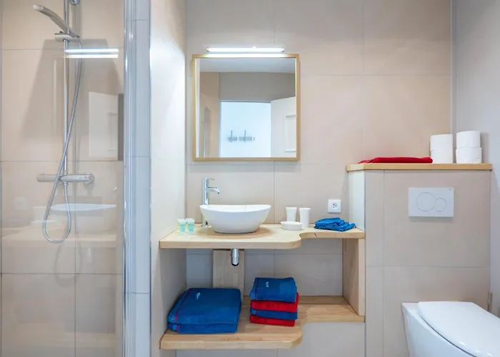 Questa struttura, composta da un salottino, è dotata di un divano. Inoltre dispone di comfort moderni come un televisore e una TV a schermo piatto con canali satellitari. Rilevatori di fumo fanno parte dei servizi di sicurezza in camera. L'appartamento ha 1 camera da letto. 1 bagno è completo di una cabina doccia e un bagno alla francese. Inoltre, il bagno è dotato di asciugacapelli e teli da bagno.